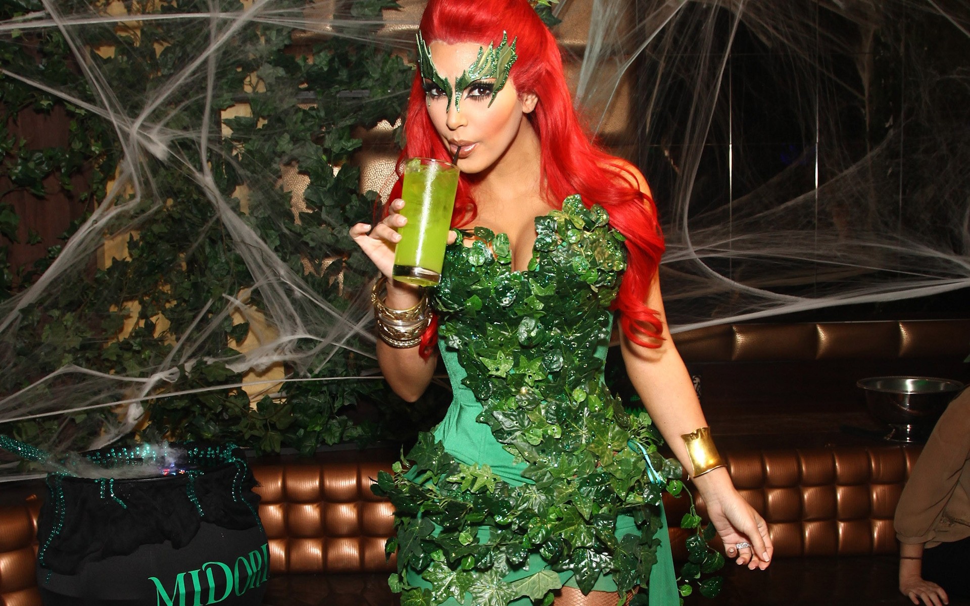 Chaudasse en robe verte et masque - fond d'écran de bureau