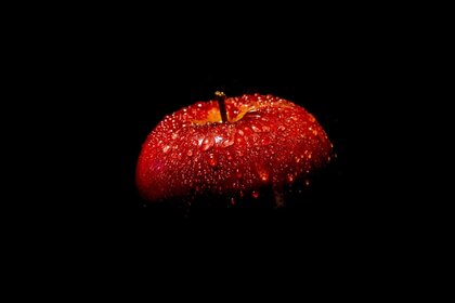 Fond sombre. red bull. gouttes sur la pomme