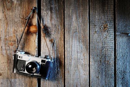 Vieux appareil photo sur le mur