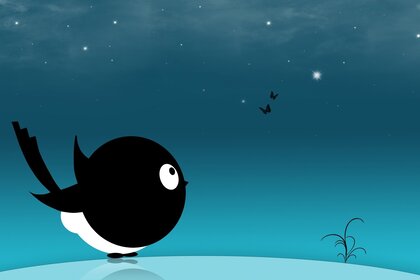 Abstrait gros oiseau à la recherche de deux papillonsAbstrait gros oiseau à la recherche de deux papillons