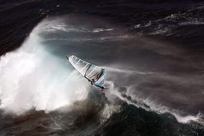 Bateau sur une grosse vague lors d'une tempête