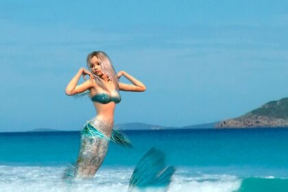 Sirène dans la mer saute hors de la vague
