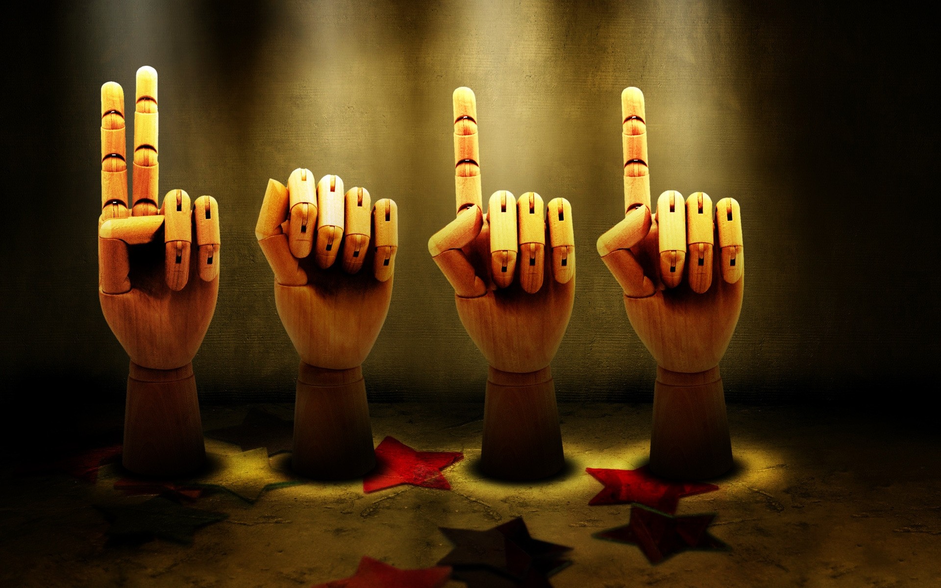 Quatre mains avec les doigts pliés - fond d'écran de bureau