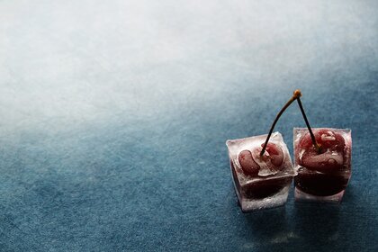 Cerise congelée dans des glaçons
