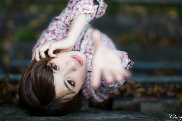 Belle fille tire sa main
