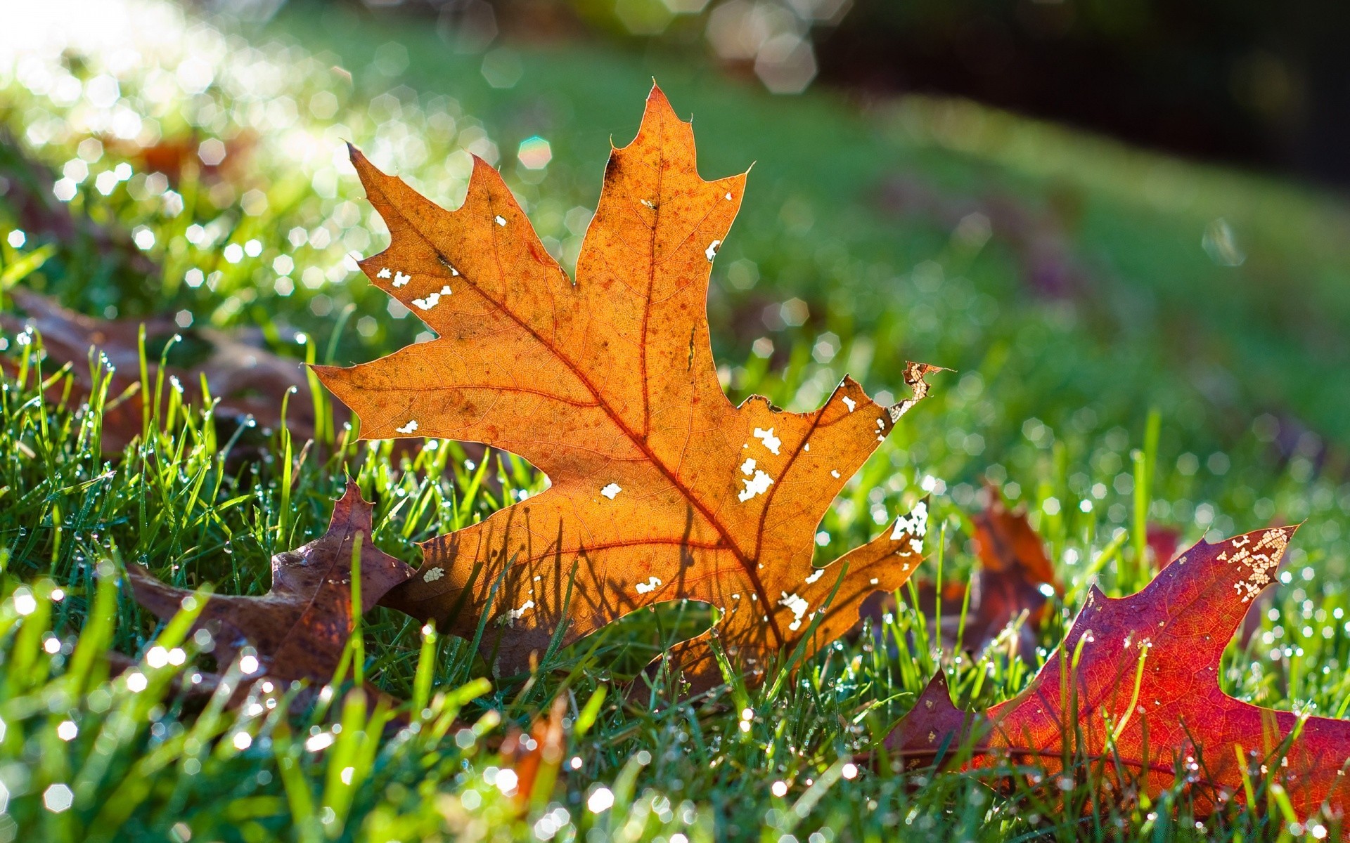 Feuille d érable sur l herbe - fond d'écran de bureau