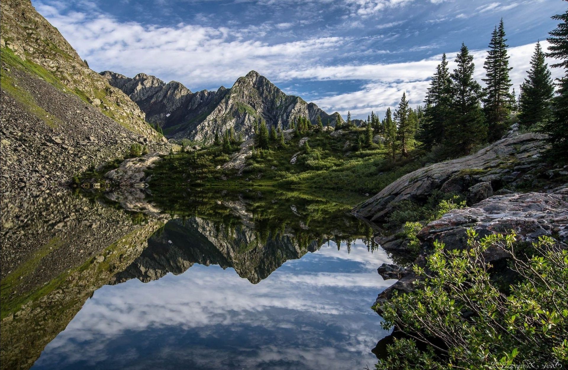 Le ciel se reflète dans l eau dans les montagnes - fond d'écran de bureau