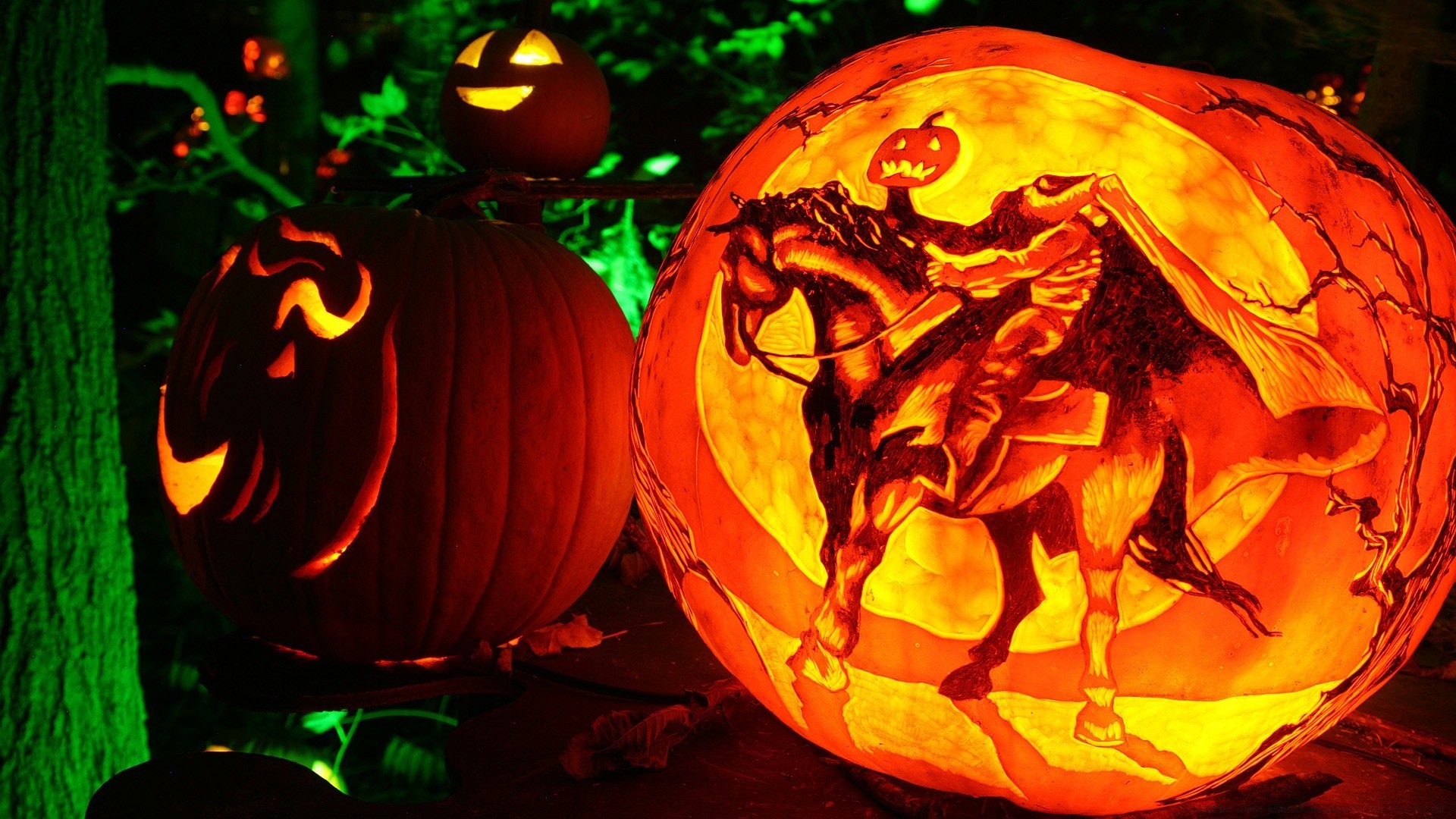 Citrouille en forme de tête avec une lanterne à l'intérieur