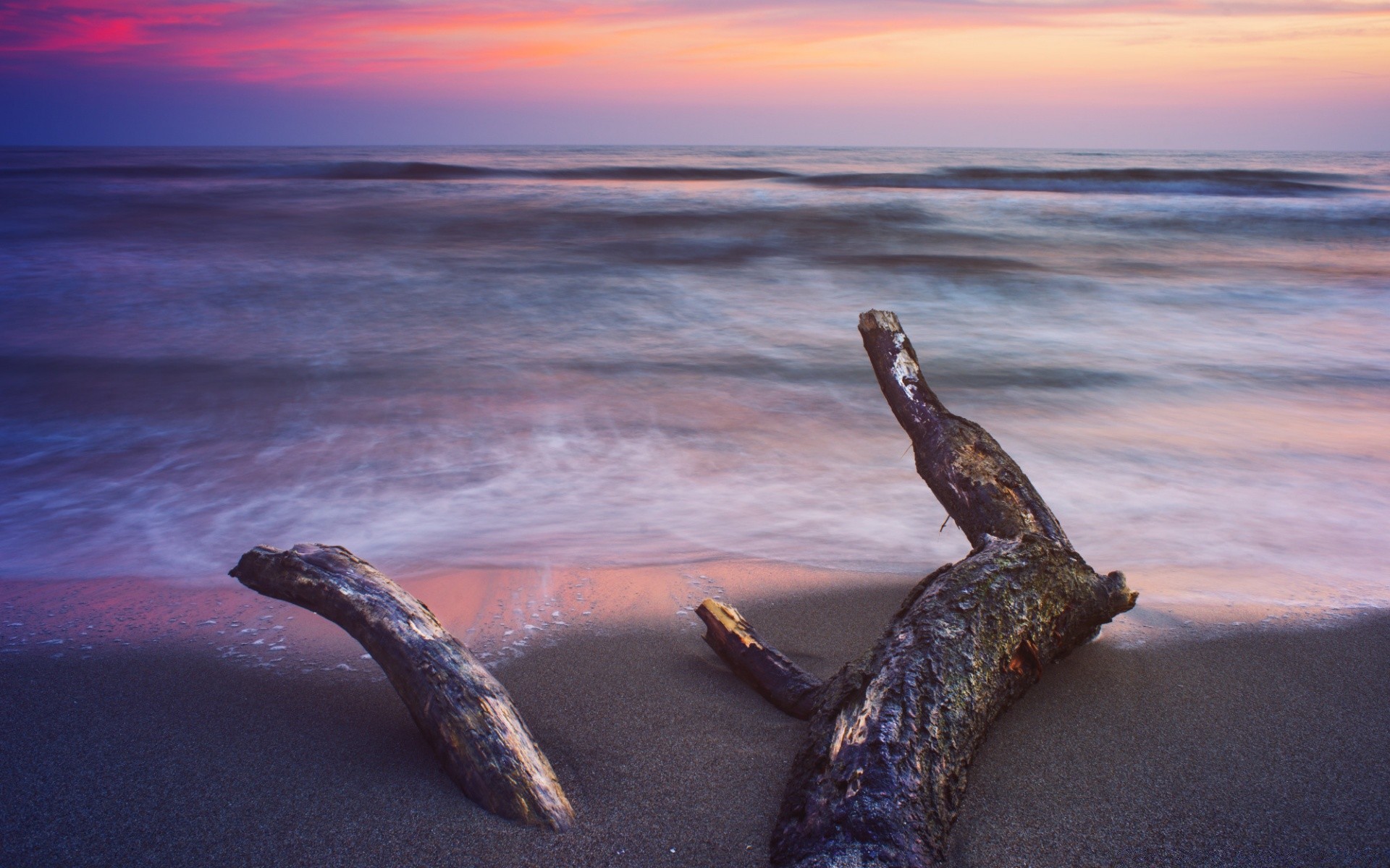 Coucher de soleil sur la plage de la mer et le reflet dans l'eau
