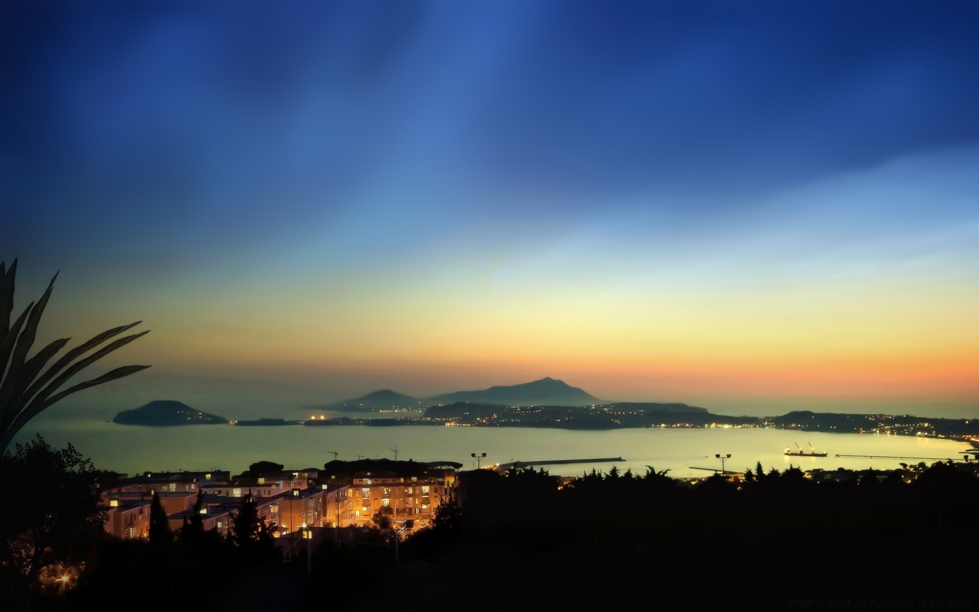 Paysage de villégiature: coucher de soleil au bord de l'eau