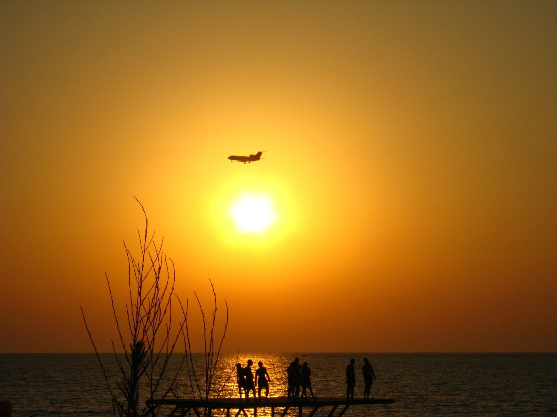 Coucher de soleil tranquille au bord de l'eau dans le désert européen