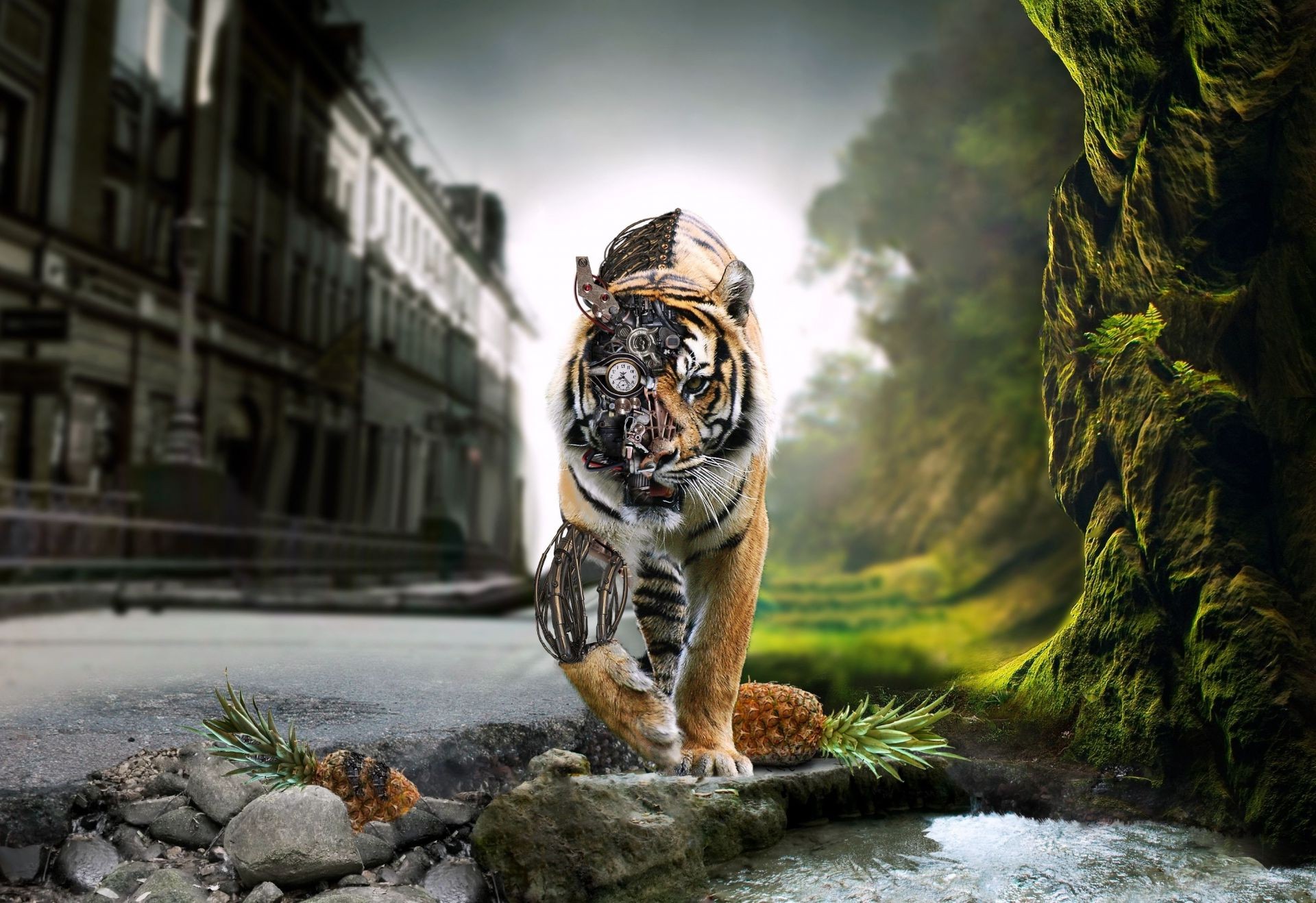 Fille avec un tigre, abstraction