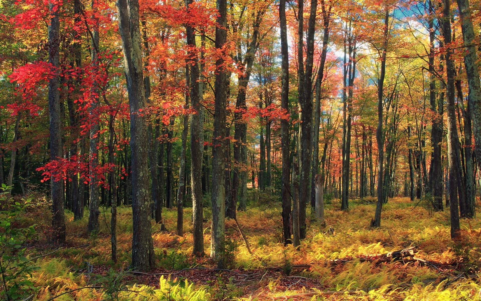 Chemin dans la forêt parsemée de feuilles d'automne multicolores