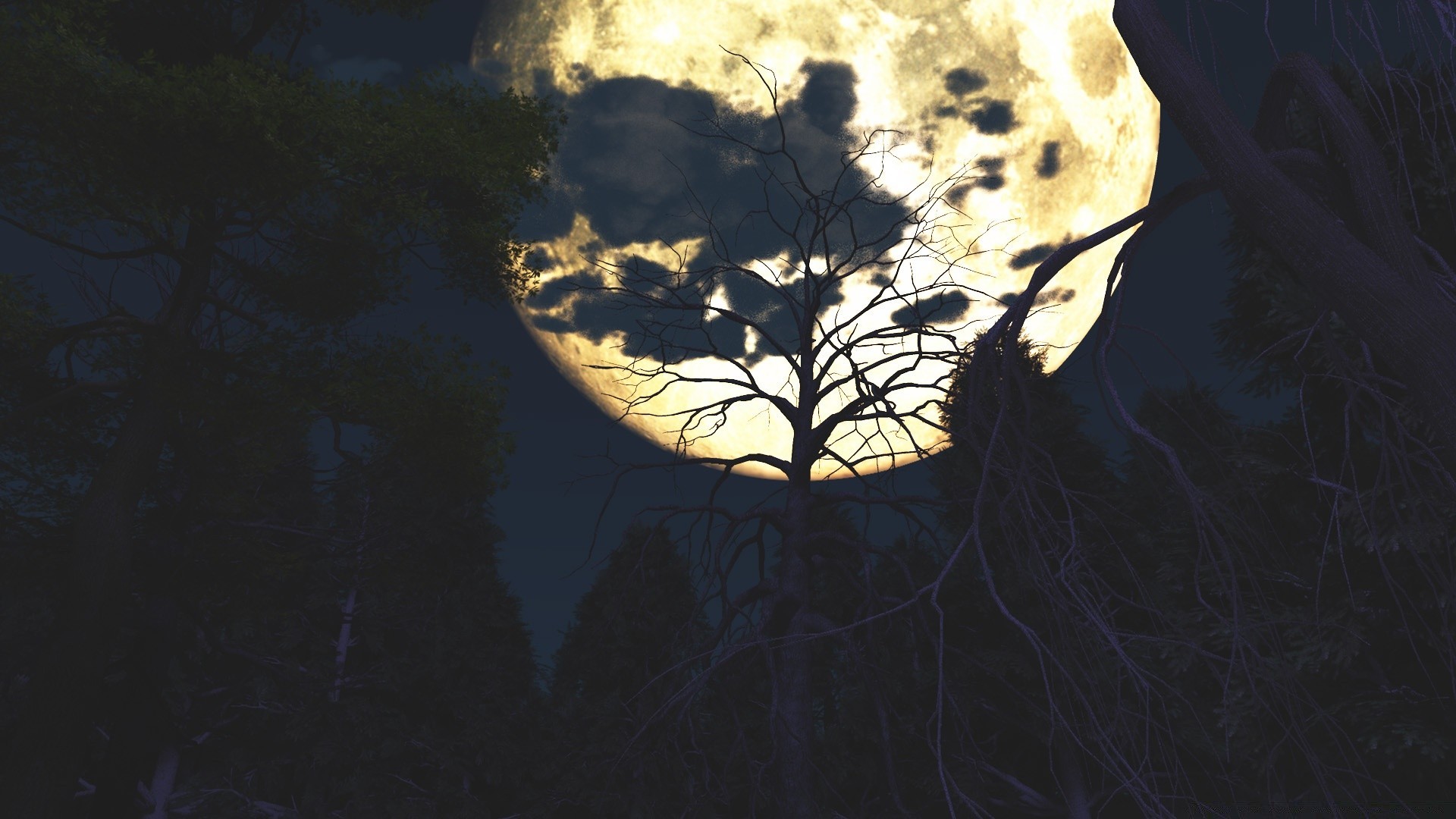Grande lune sur une forêt tranquille