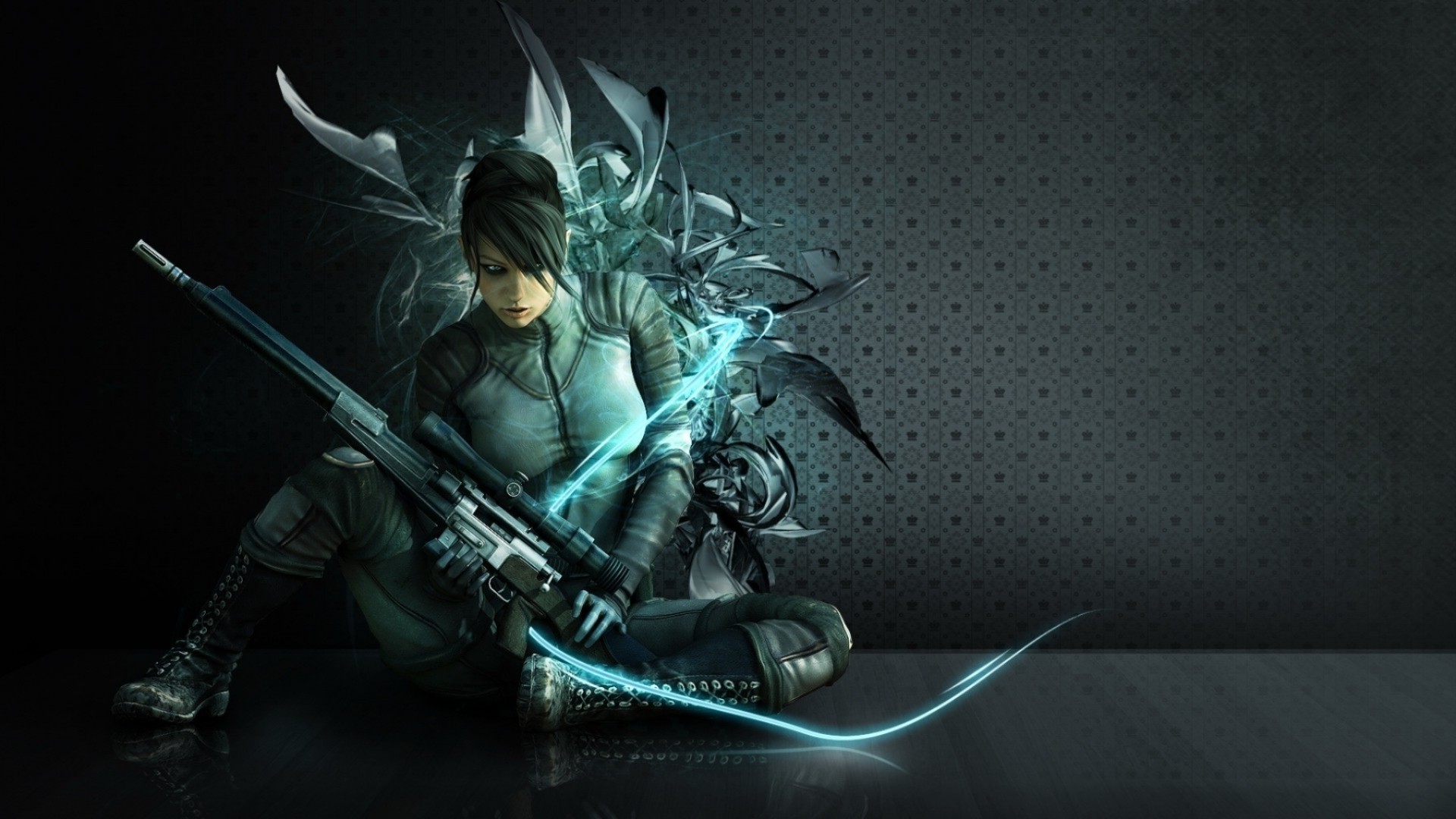 Image d'un personnage sous-marin d'une femme avec une épée