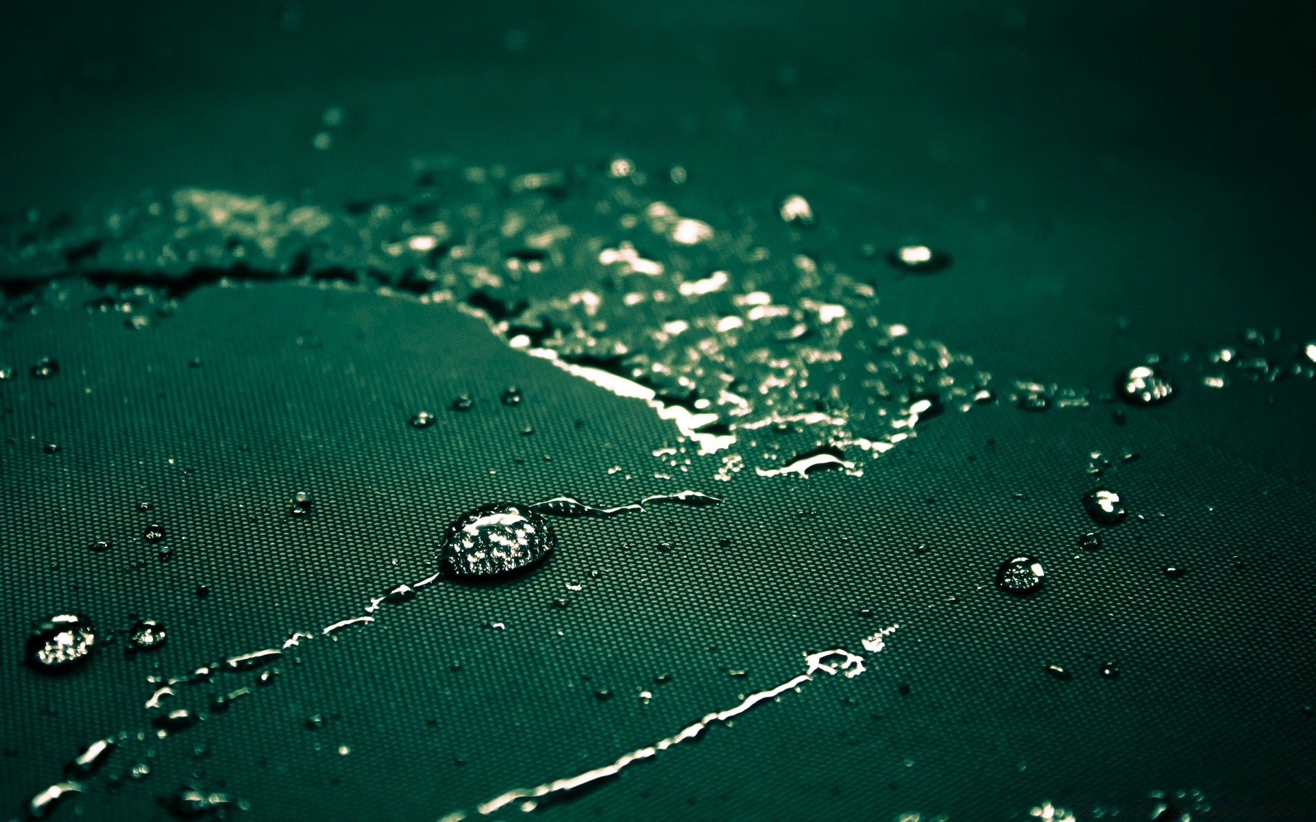 Gros plan de la feuille avec des gouttes sur fond bleu