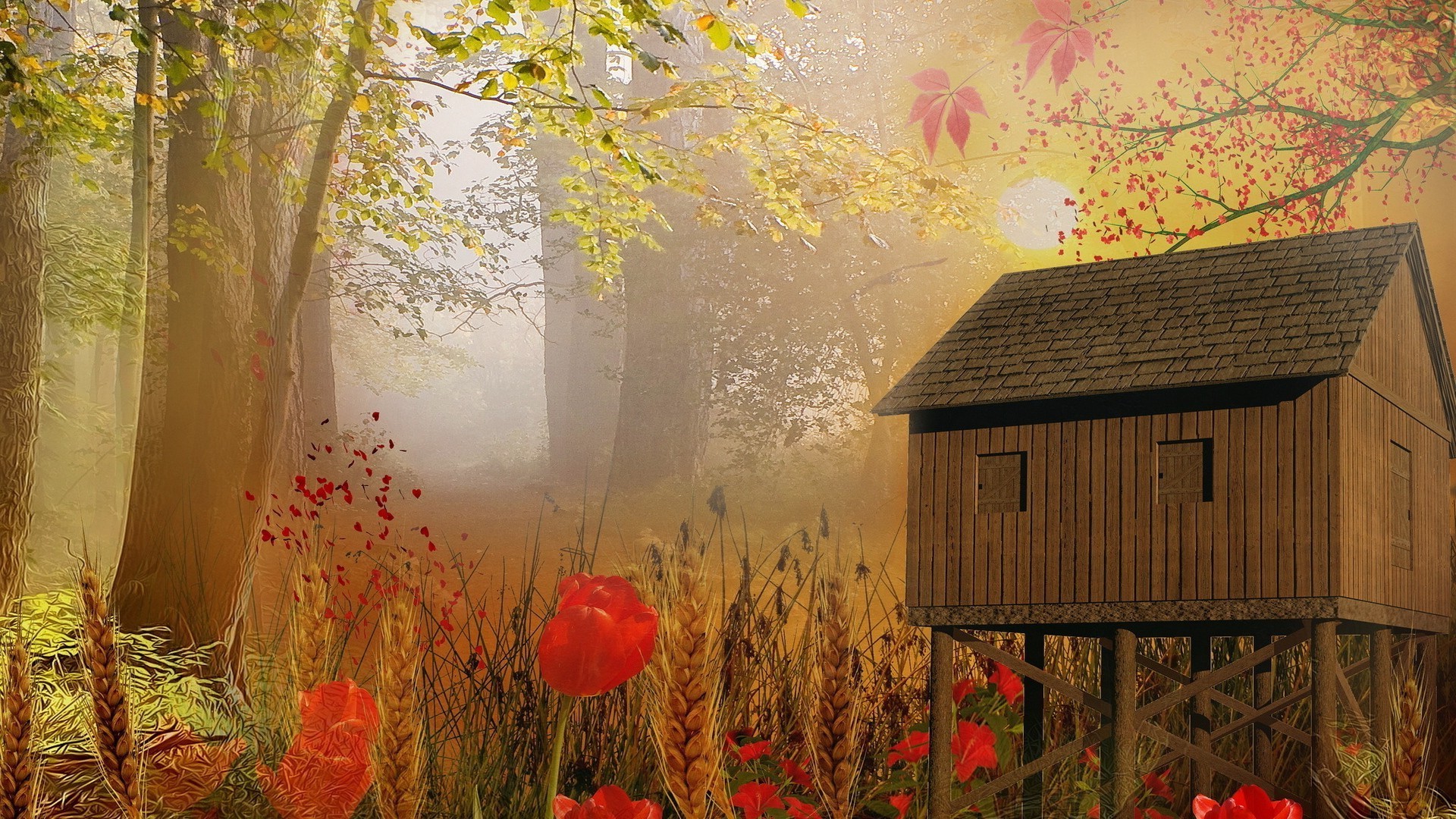 Maison de style norvégien sur fond de ciel orageuxMaison de style norvégien sur fond de ciel orageux