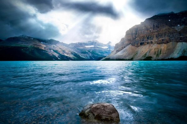Coucher de soleil sur la mer avec des pierres qui sortent de l'eau