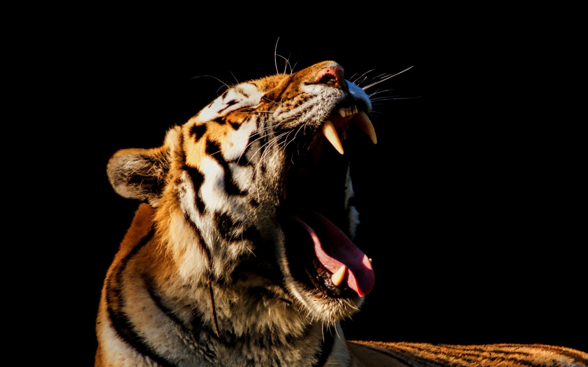 Le tigre de l'amour bâille doucement en exposant ses énormes crocs