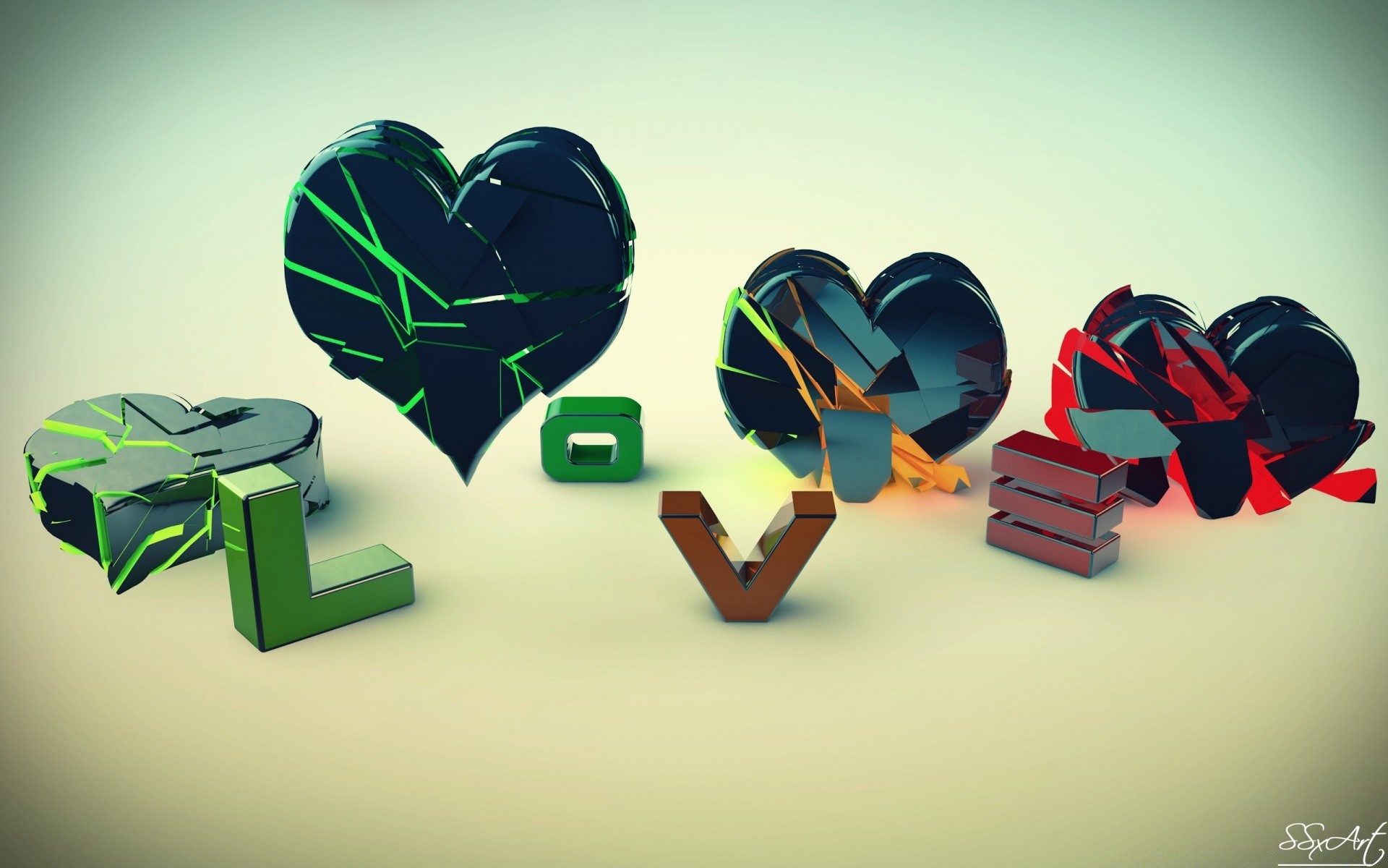 Graphiques avec des coeurs et le mot LOV