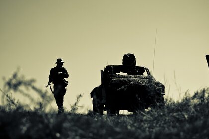L'hélicoptère se trouve sur l'aérodrome, en attente d'aller en vol