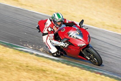 Virage incliné sur une moto de course