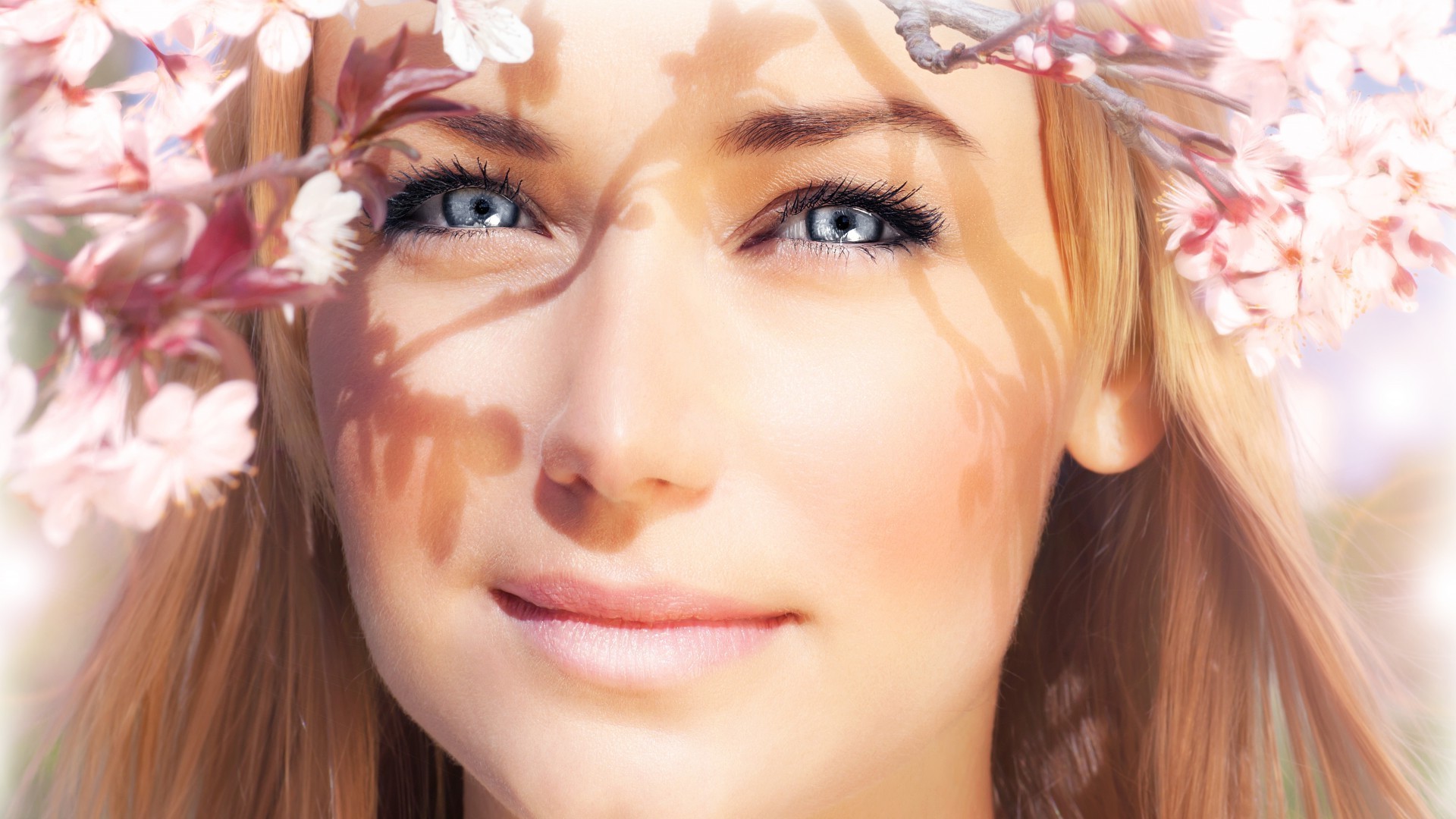 Portrait d'une jeune fille dans des branches de Sakura