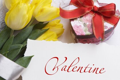 Tulipes jaunes et boîte de bonbons pour la saint-valentinTulipes jaunes et boîte de bonbons pour la Saint-Valentin