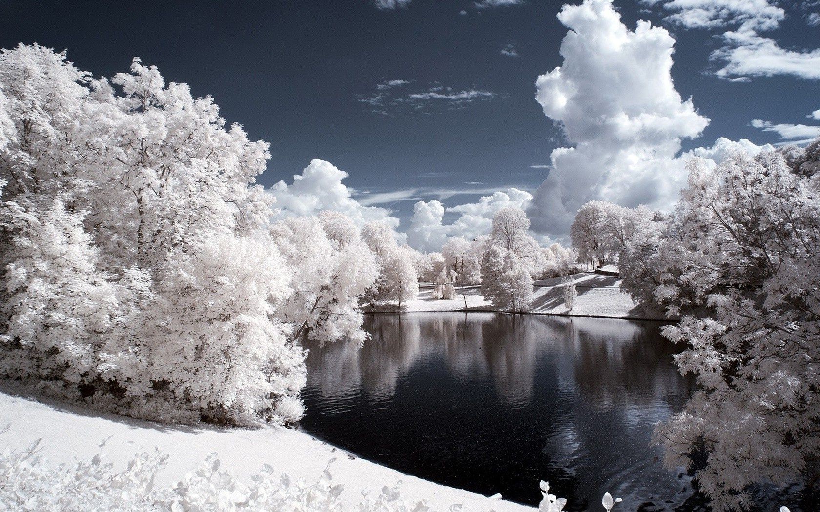 Lac de la côte enneigée glaciale