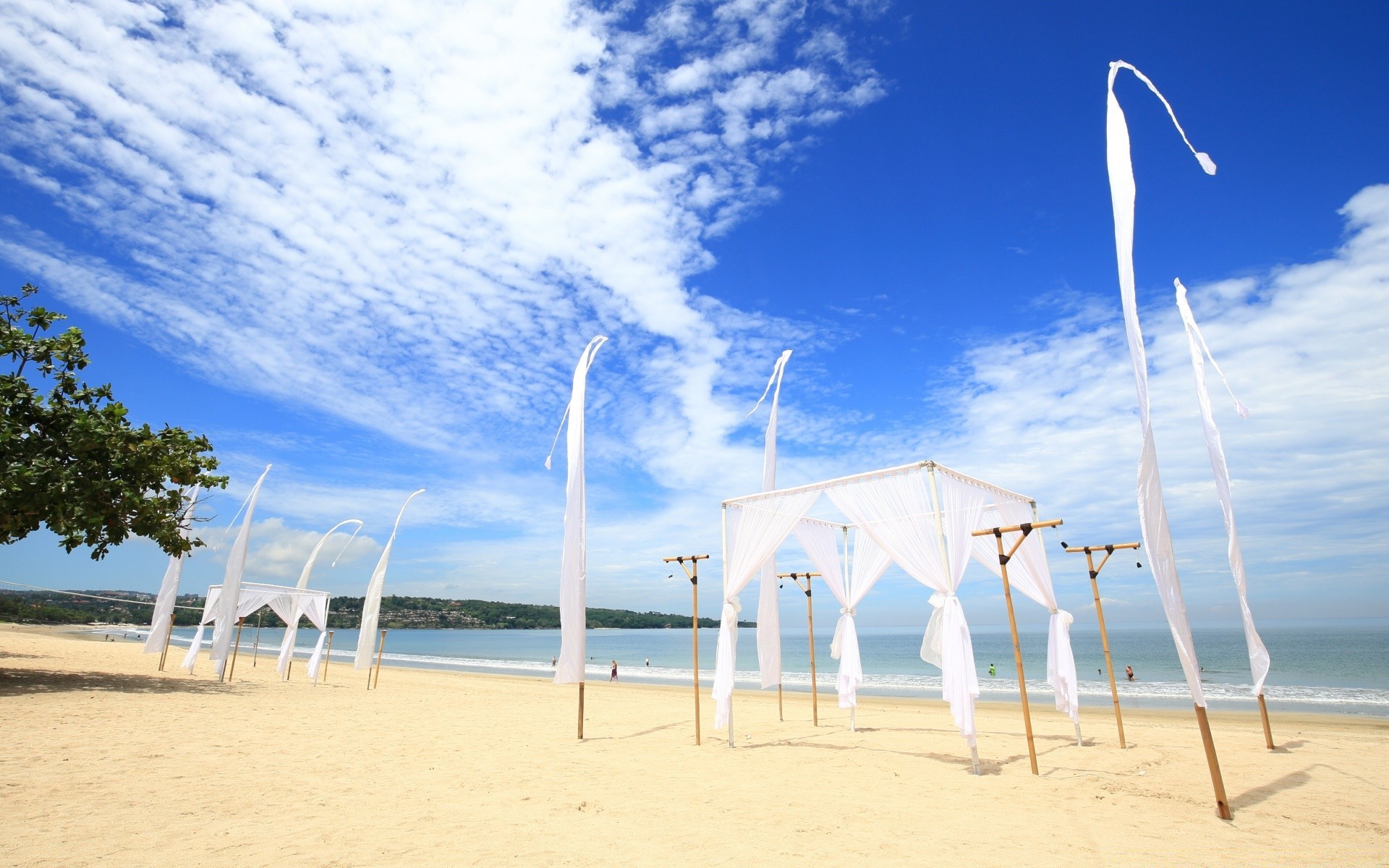 Vue depuis la jetée au coucher du soleil derrière le pont