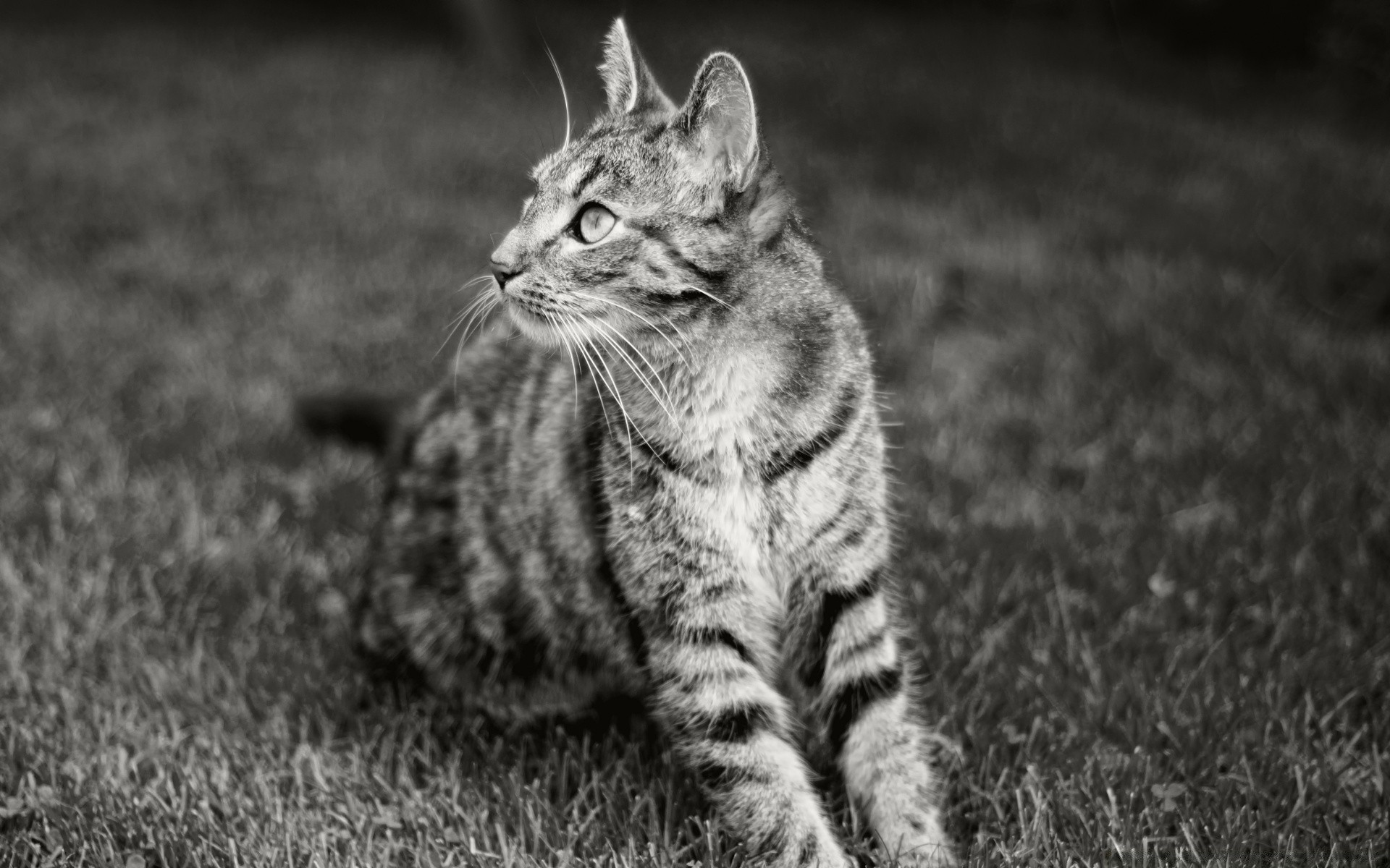 Chaton rayé se trouve sur l'herbe