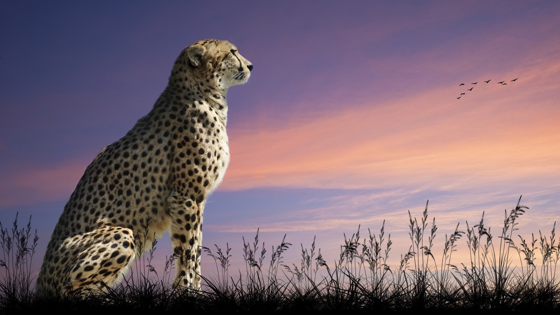 Guépard sur fond de ciel coucher de soleil