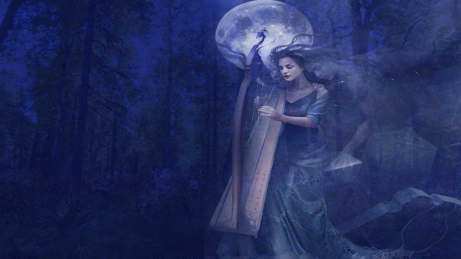 Fond d'écran sombre avec femme actrice