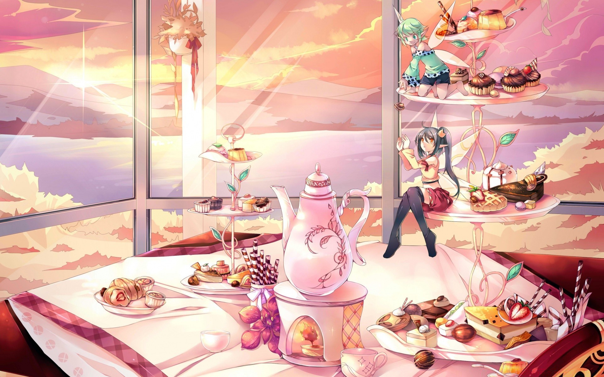 Fée aux cheveux bleus dans le style anime entouré d'animaux, d'oiseaux et de créatures de conte de fées