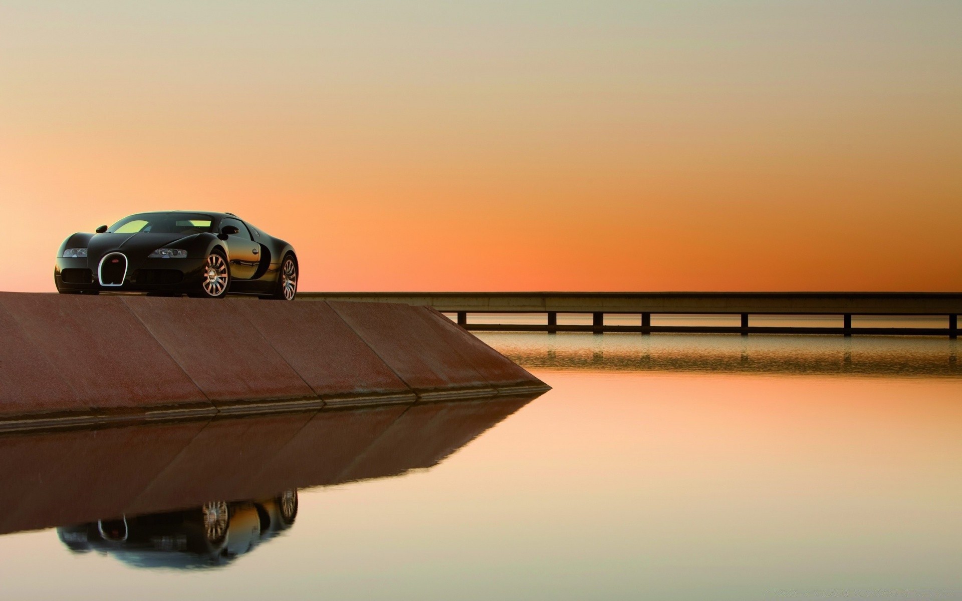 Cabriolet bleu avec Jantes chromées sur fond de montagnes