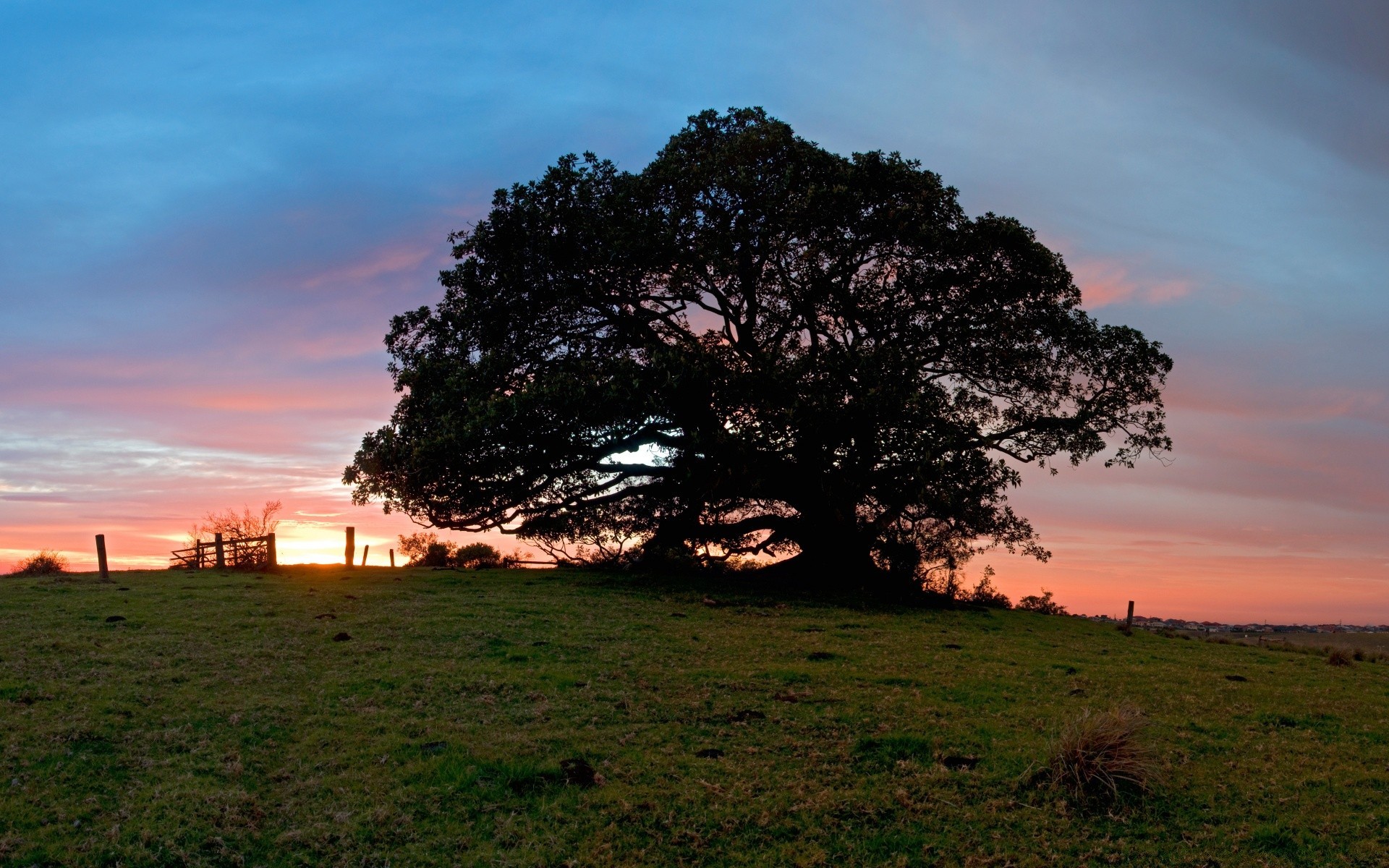 Arbre solitaire au coucher du soleil