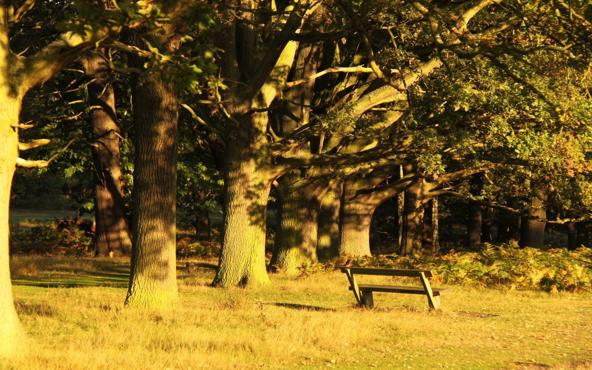 Les rayons du soleil se frayer un chemin à travers les arbres paysage