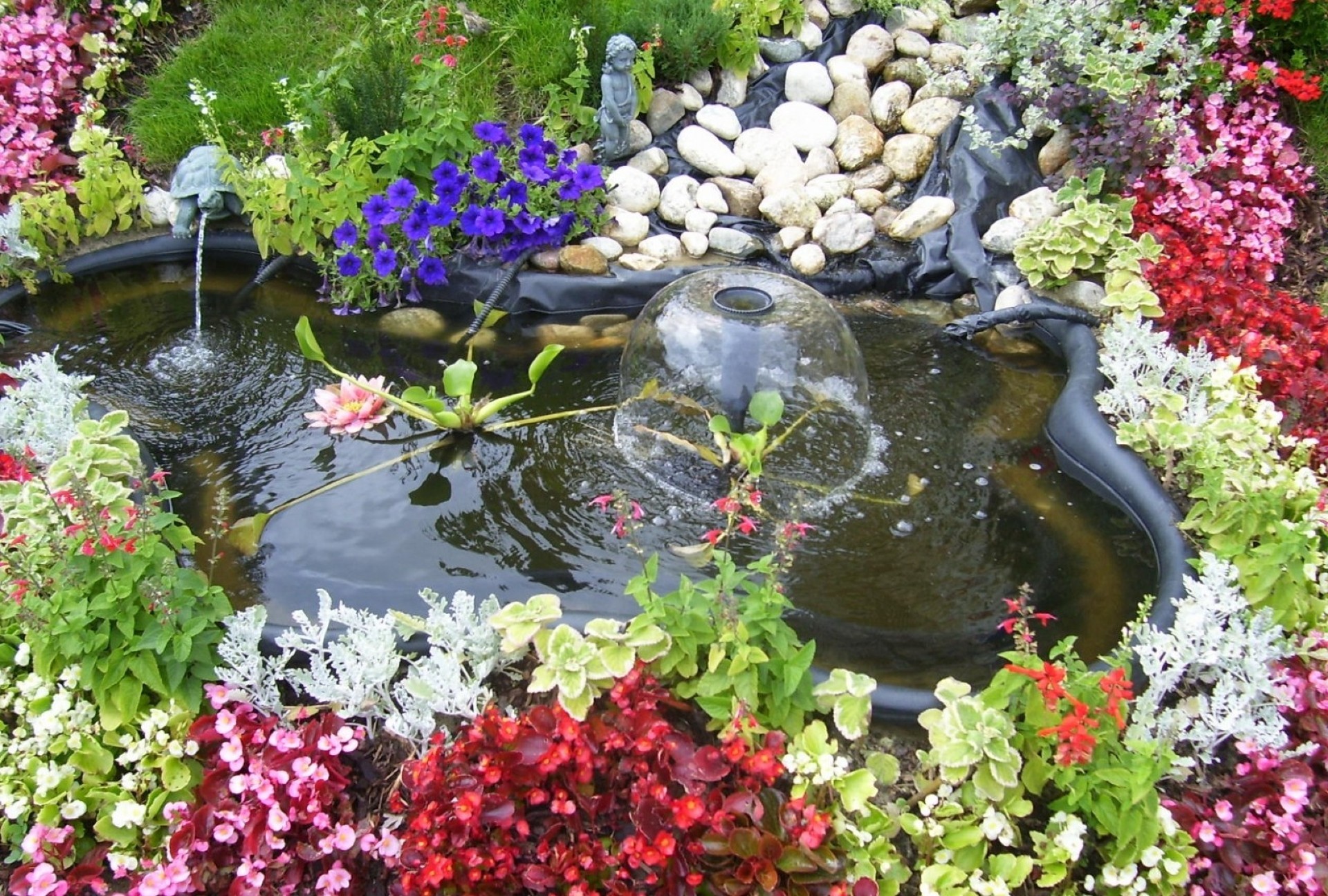 Clairière colorée avec des fleurs et un étang