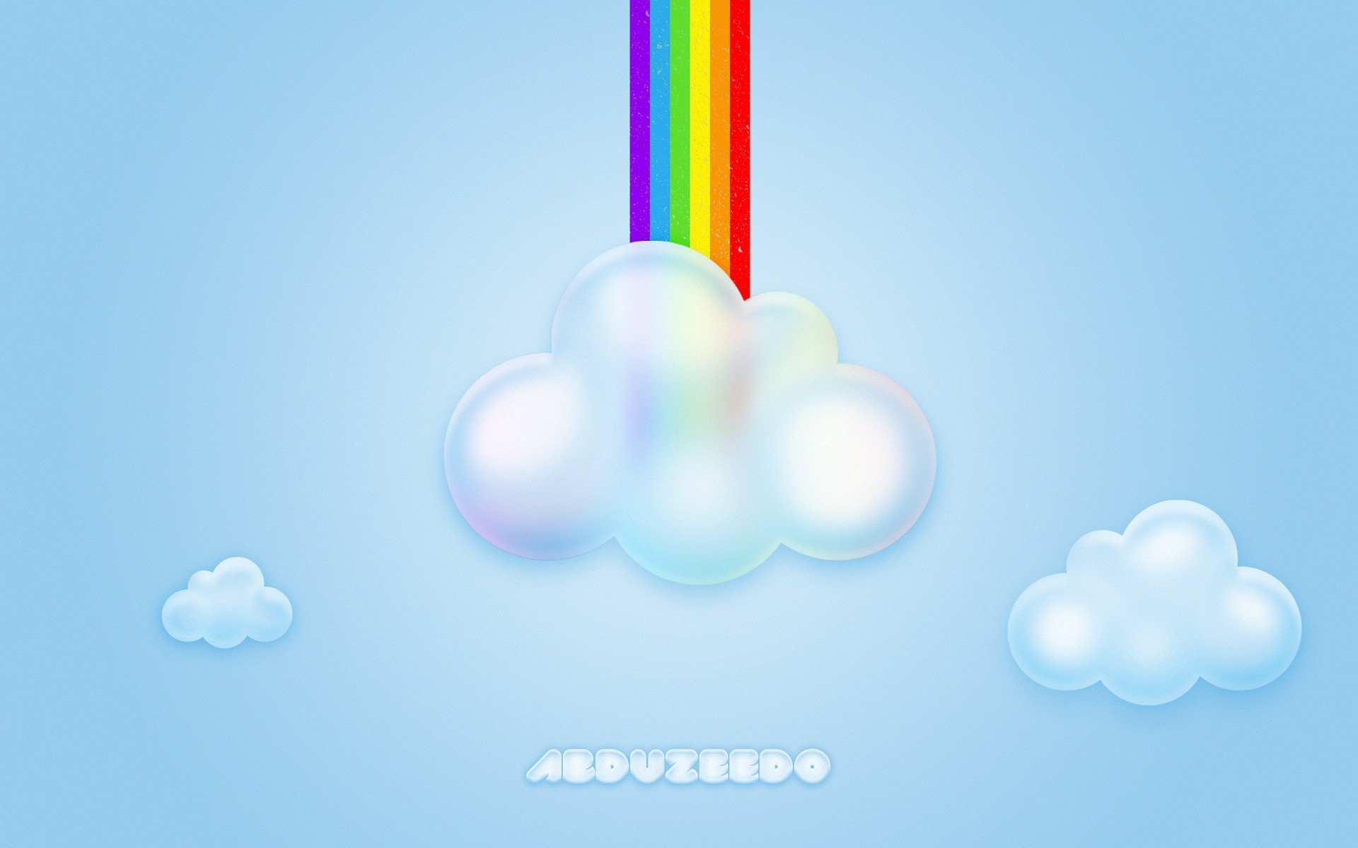 Un arc-en-ciel dans le ciel bleu est visible des nuages