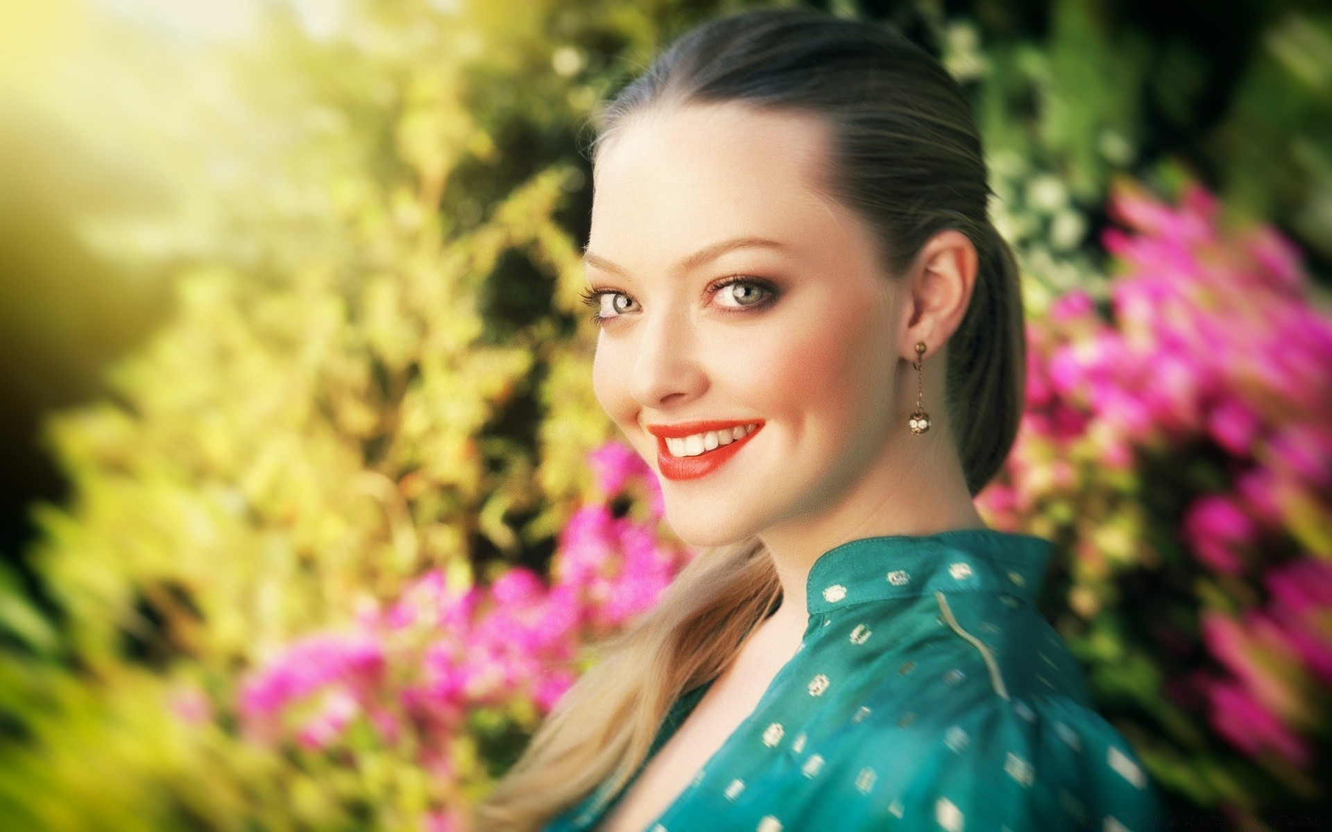 Fille aux cheveux blonds en t-shirt rouge sur fond lumineux