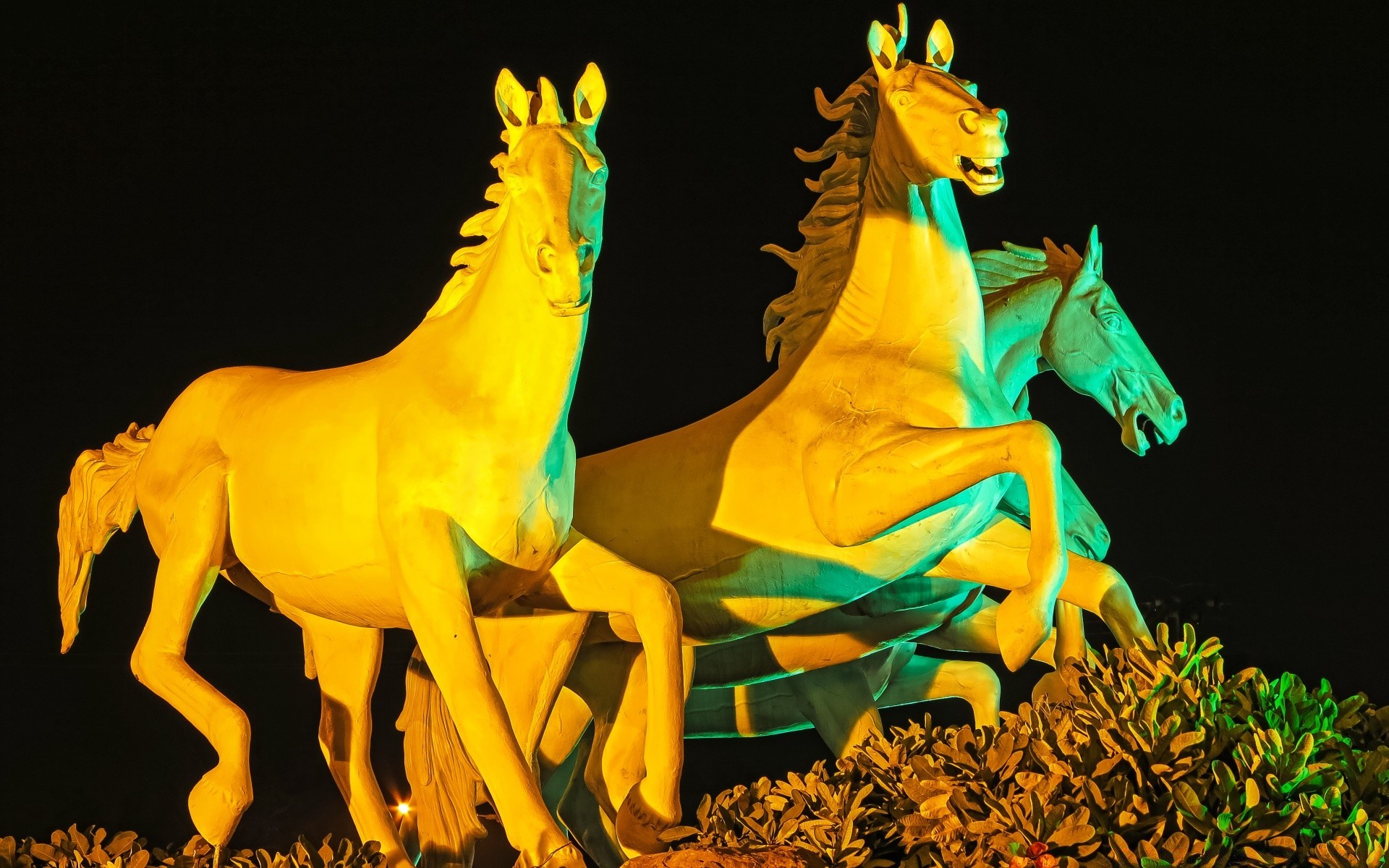 Sculpture éclairée de chevaux. Art