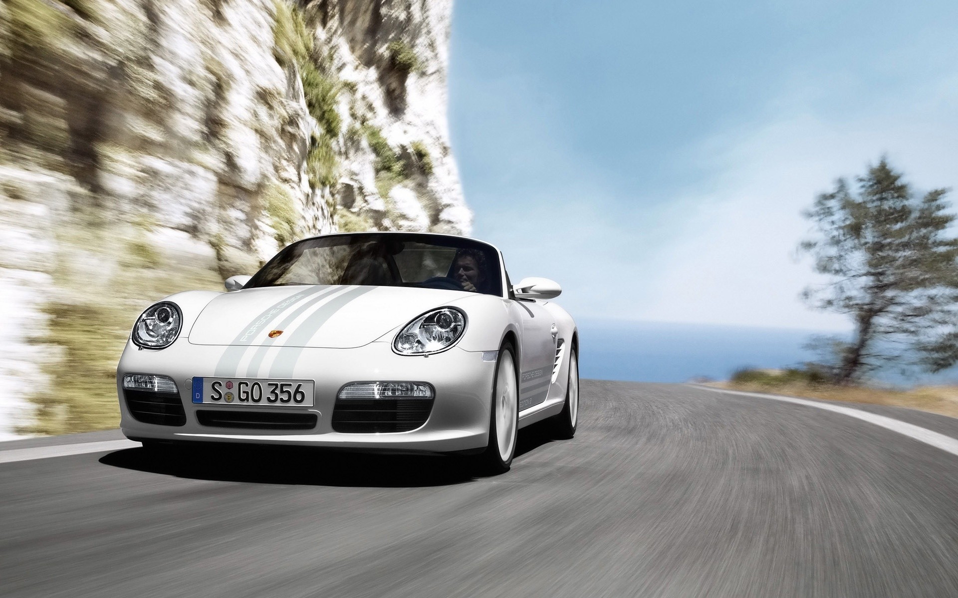 Une Porsche décapotable blanche sur la piste