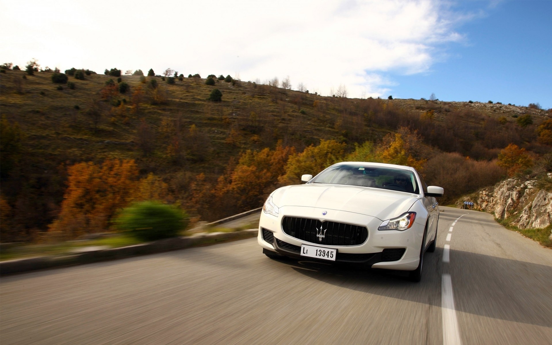 Maserati blanc sur une belle route