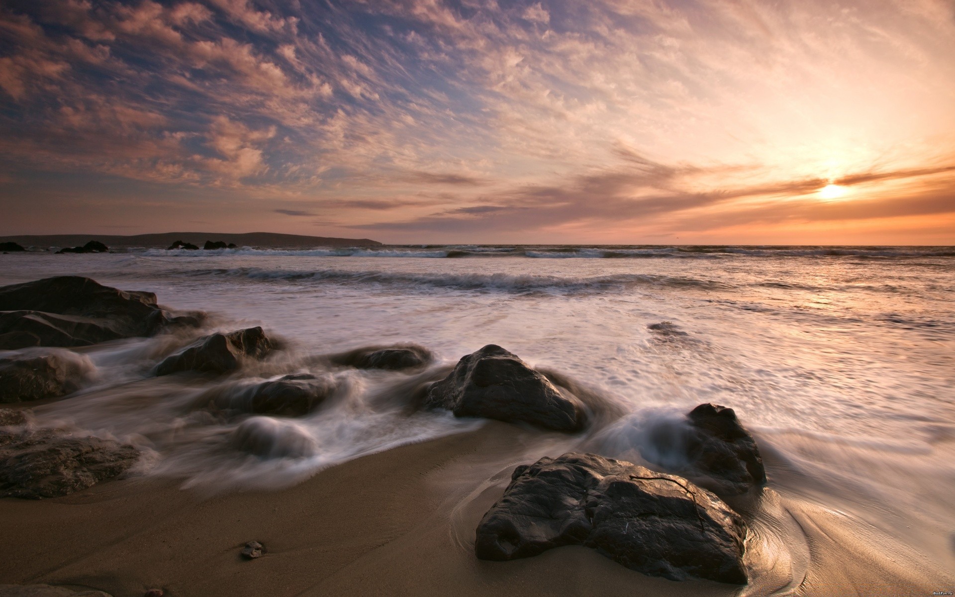 Aube dans les montagnes. Voyages. Économiseur d'écran