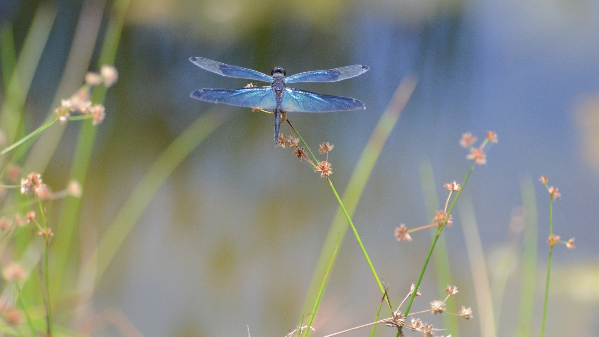 Libellule et papillon à l'aube