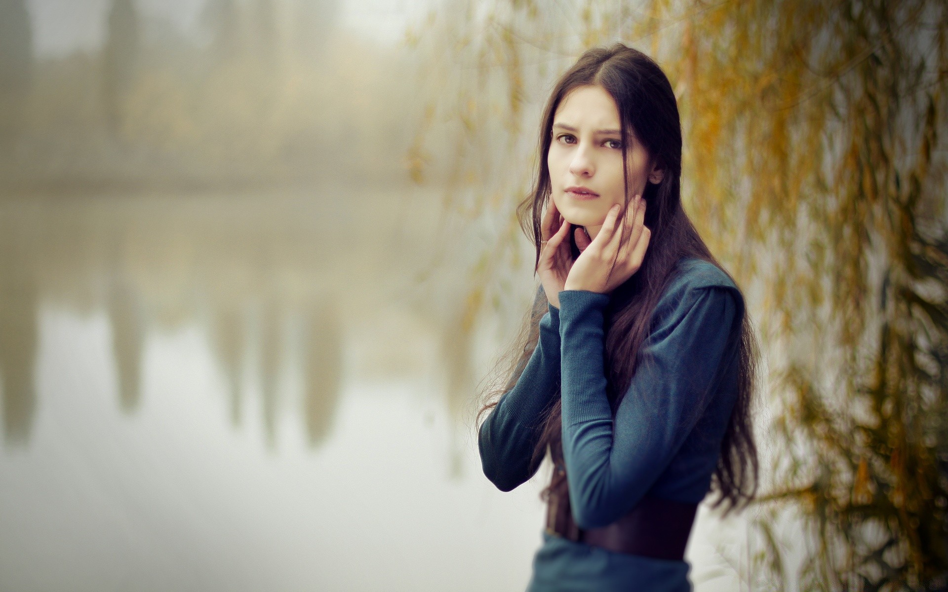 Fille aux cheveux mouillés en maillot de bain noir sur la plage de sable de la mer