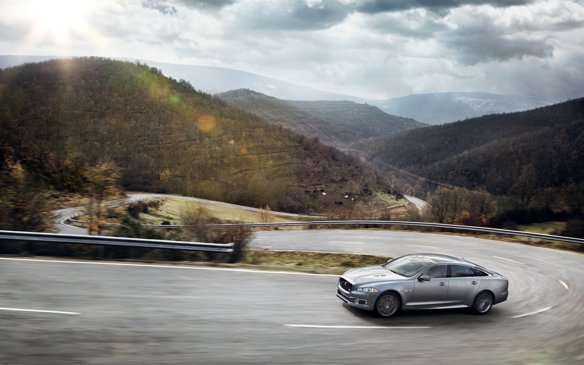 Cabriolet bleu avec Jantes chromées sur fond de montagnes