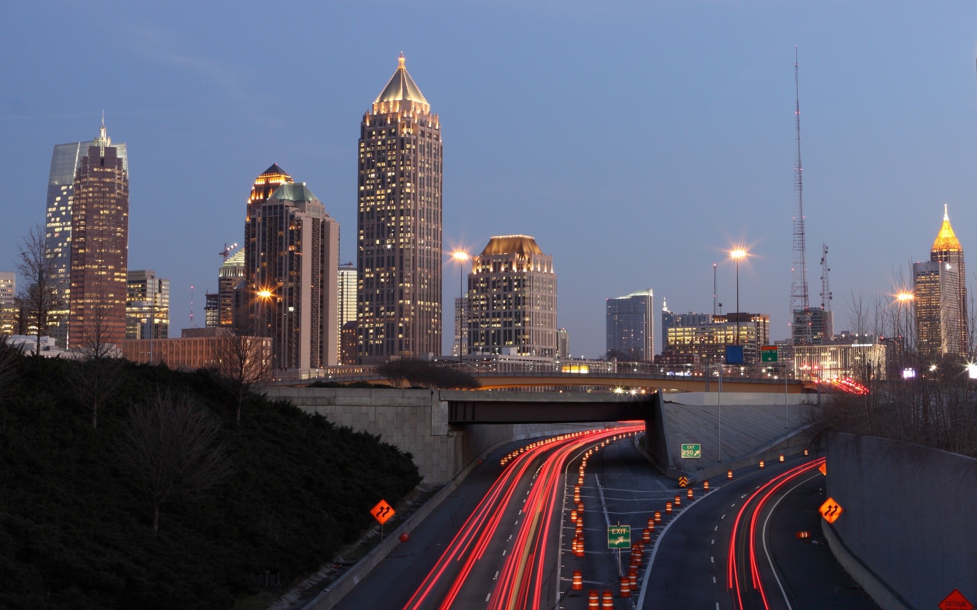 Coucher de soleil urbain sur fond de lac dans la nuit