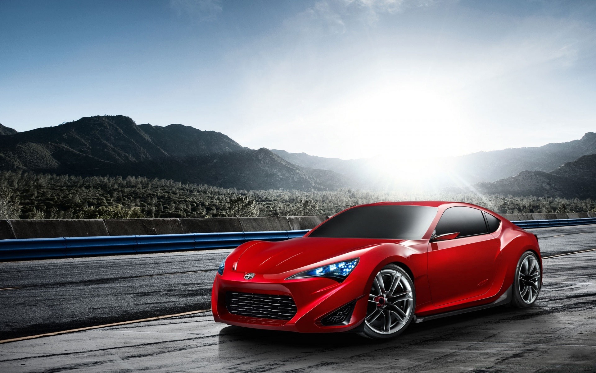 Voiture de technologie rouge vif Ford sur fond de nuages
