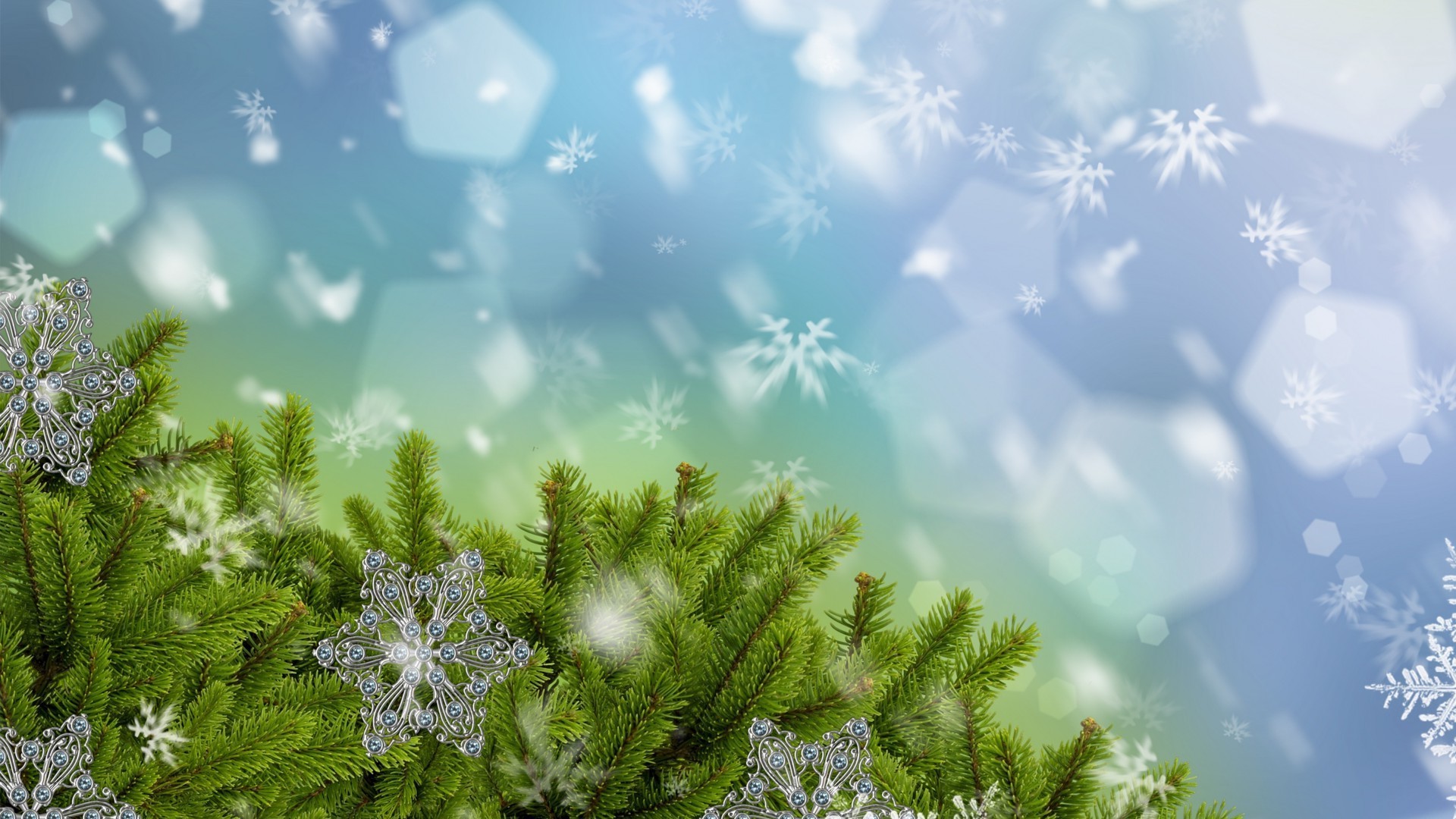 Flocons de neige du nouvel an avec boïki et épinette